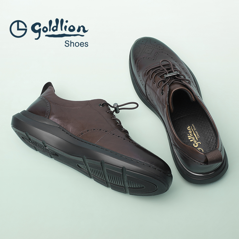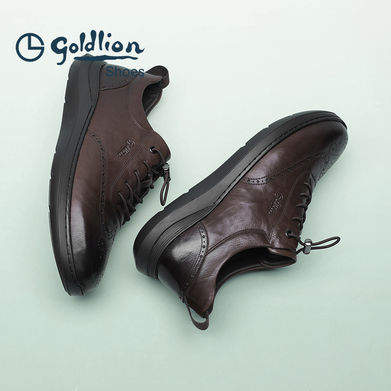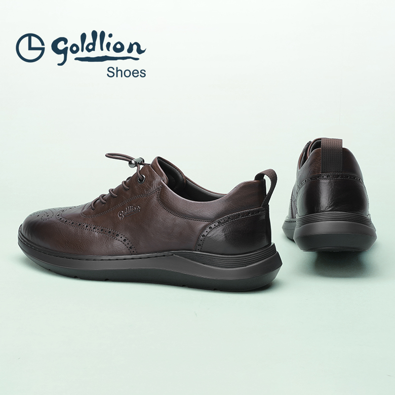 金利来皮鞋男潮流时尚春季新款耐磨舒适休闲透气真牛皮布洛克男鞋