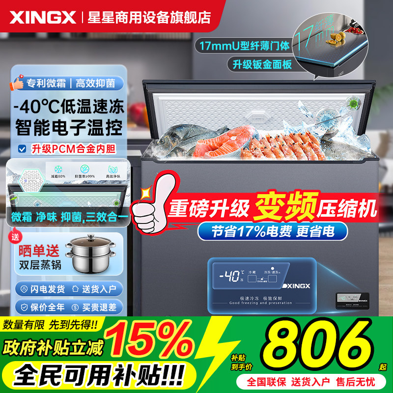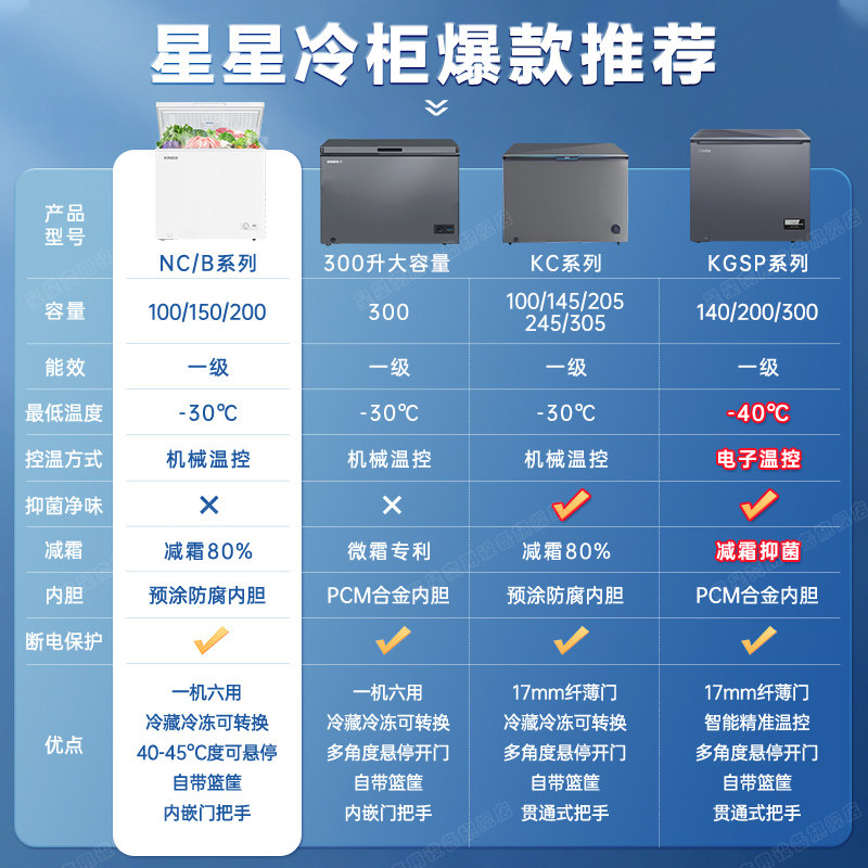 星星冰柜家用200/305升L冷藏冷冻柜两用小型一级能效官方旗舰冷柜
