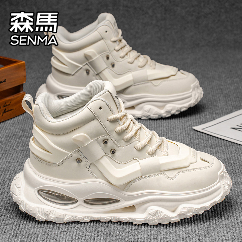 森马高帮男鞋秋季潮牌百搭青少年运动休闲跑步厚底增高小白老爹鞋