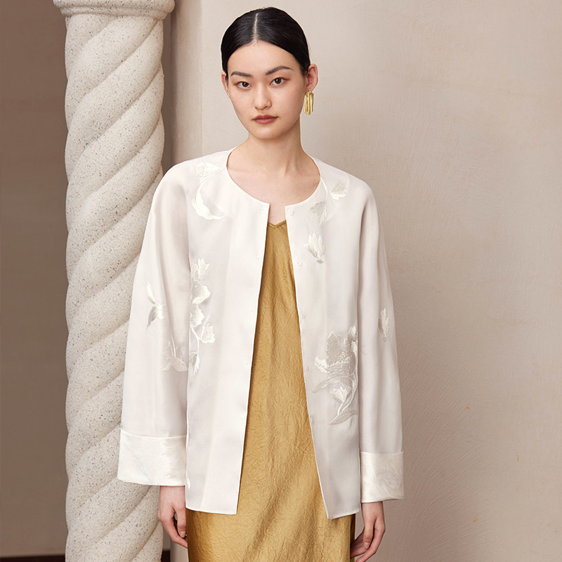 新中式真丝欧根缎玉玛瑙葫芦上衣
