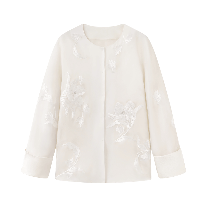 如意连云 夏真丝欧根缎绣花衬衫女新中式国风复古玉玛瑙葫芦上衣