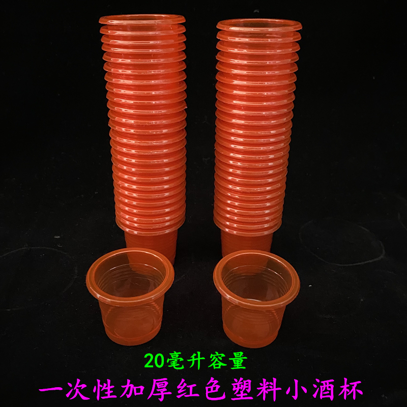 一次性小酒杯20ml毫升新款小号白酒杯中式结婚红色透明塑料烈酒杯