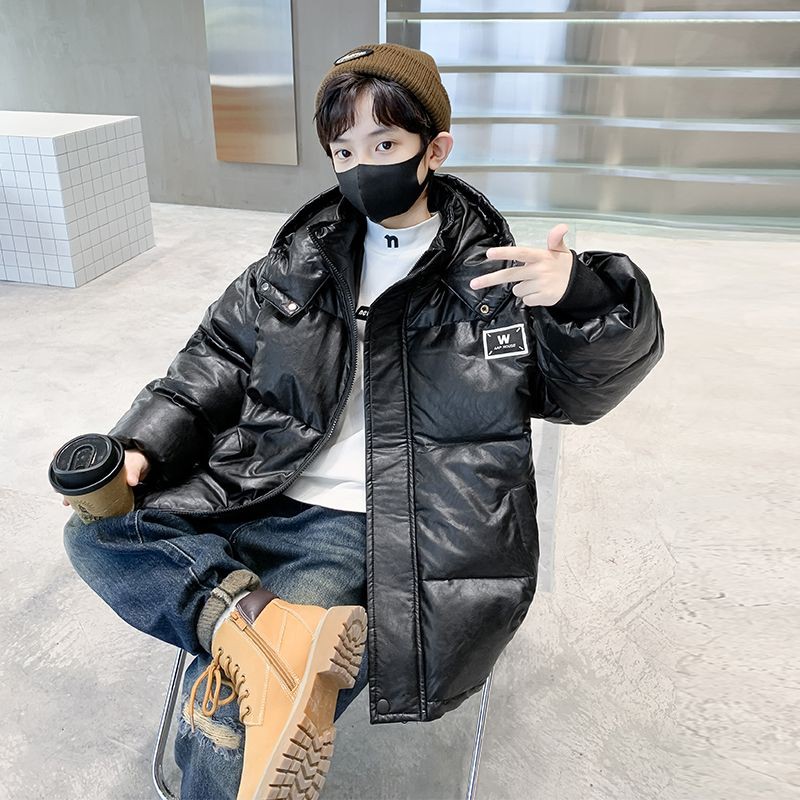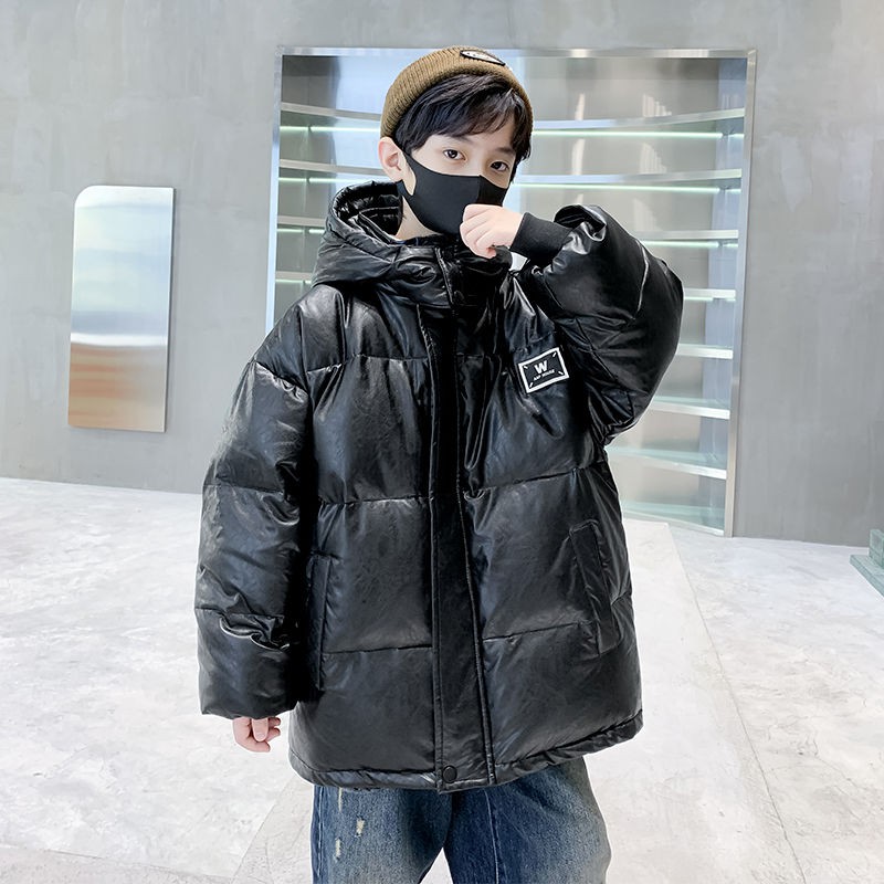 儿童皮衣羽绒服冬装2025新款中大童装潮牌男孩冬季白鸭绒免洗外套