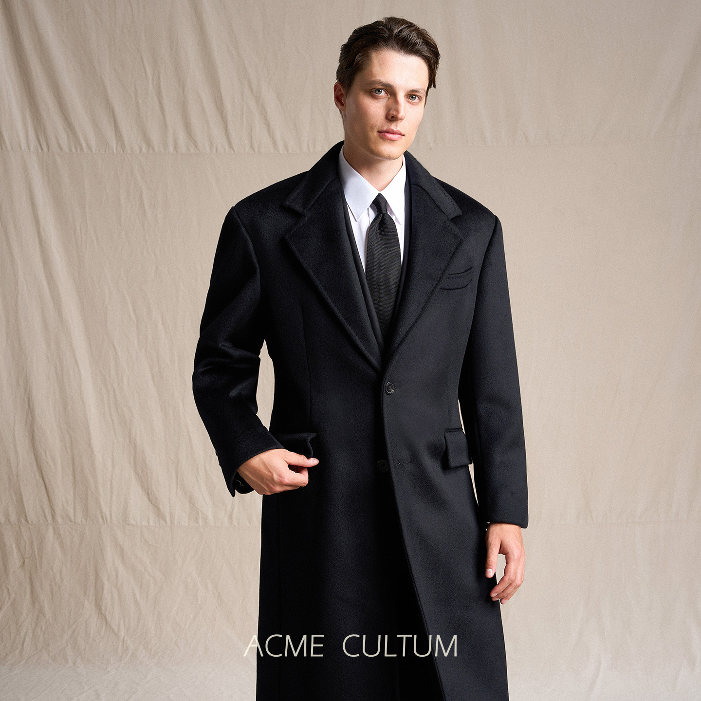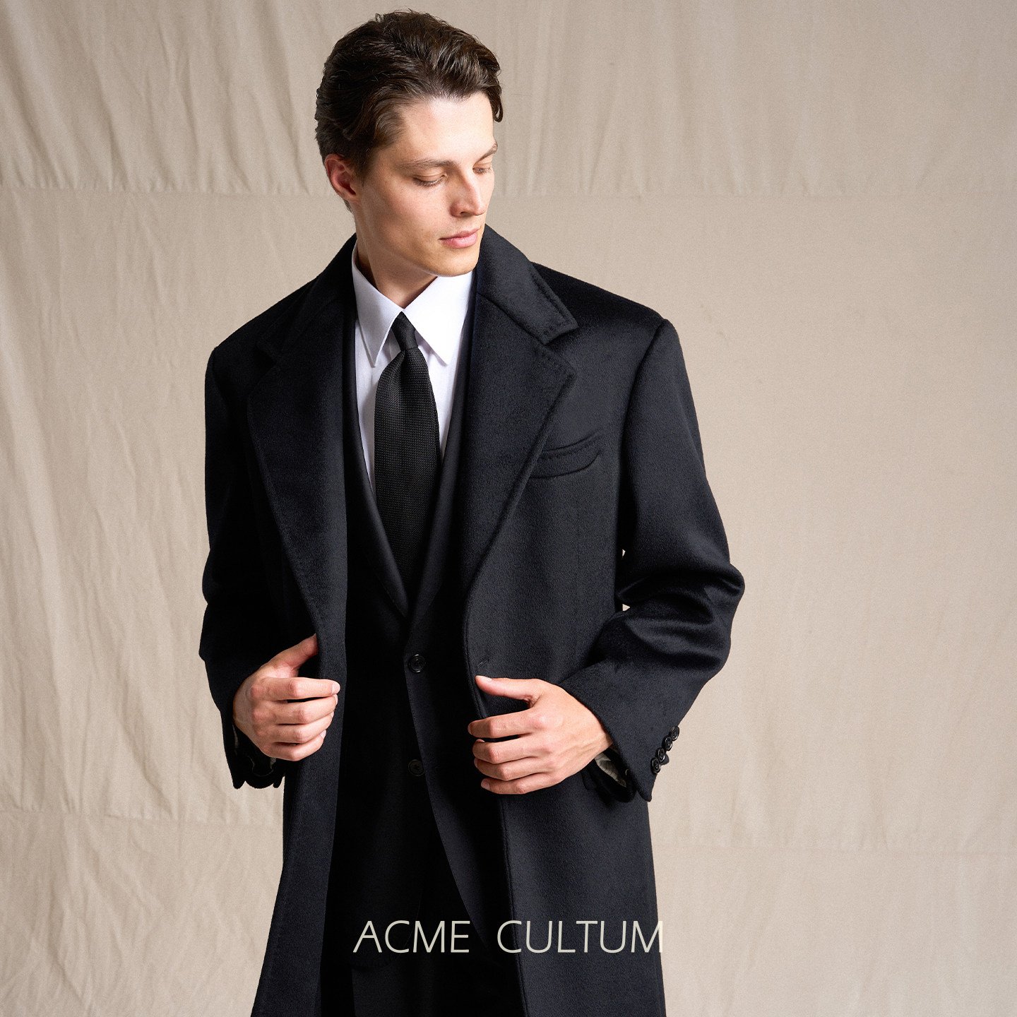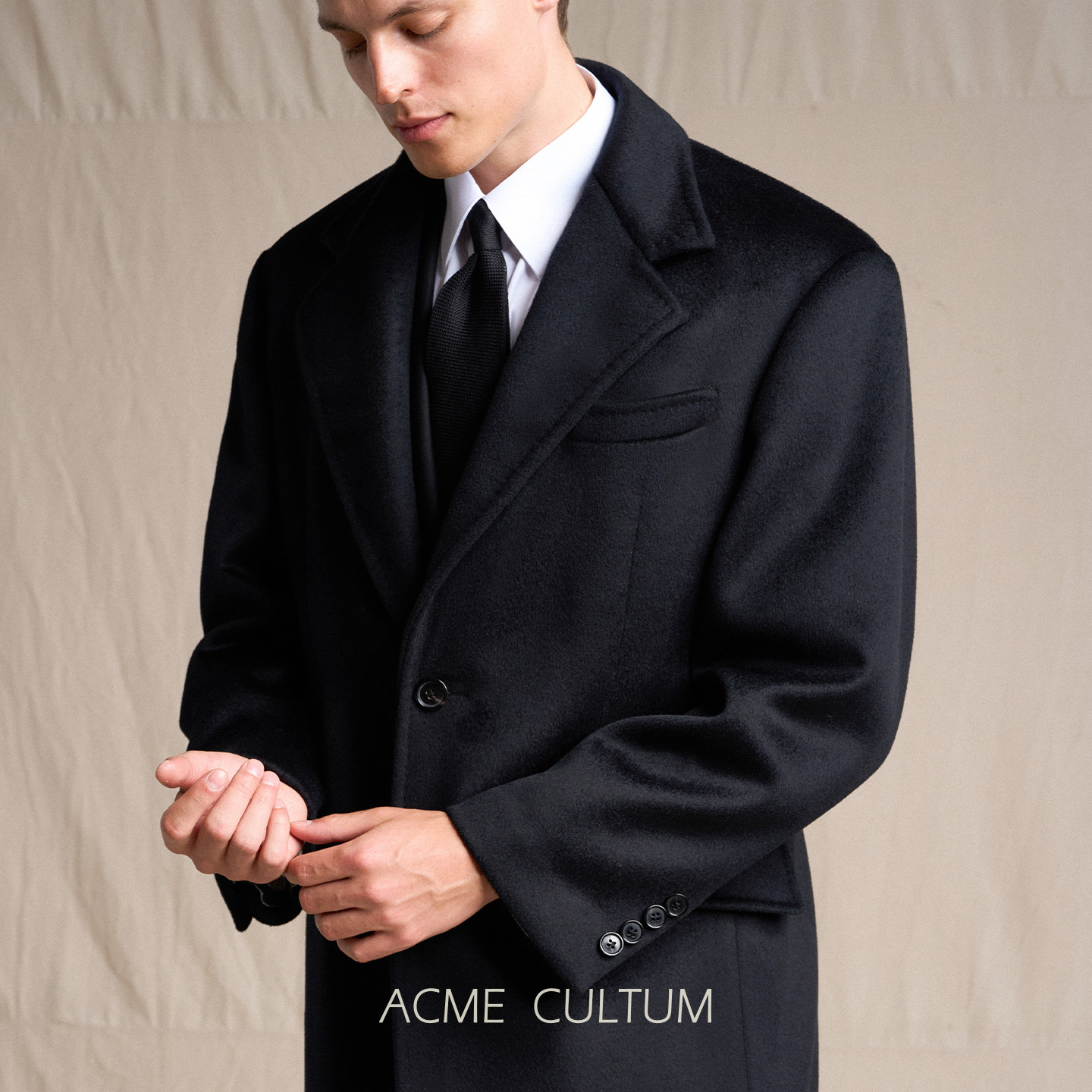 Acme cultum羊绒羊毛加厚宽肩长款柴斯特毛呢大衣男通勤商务外套