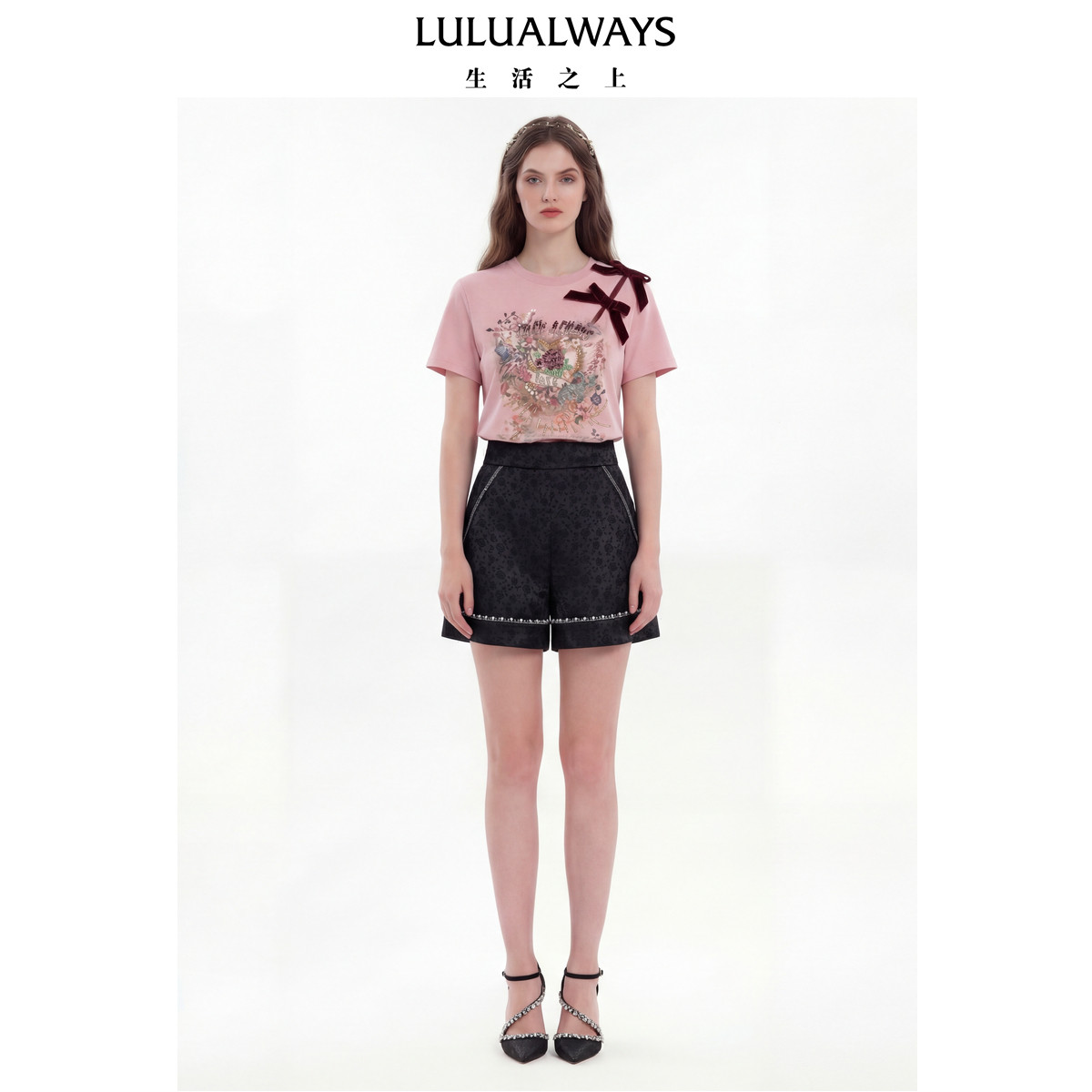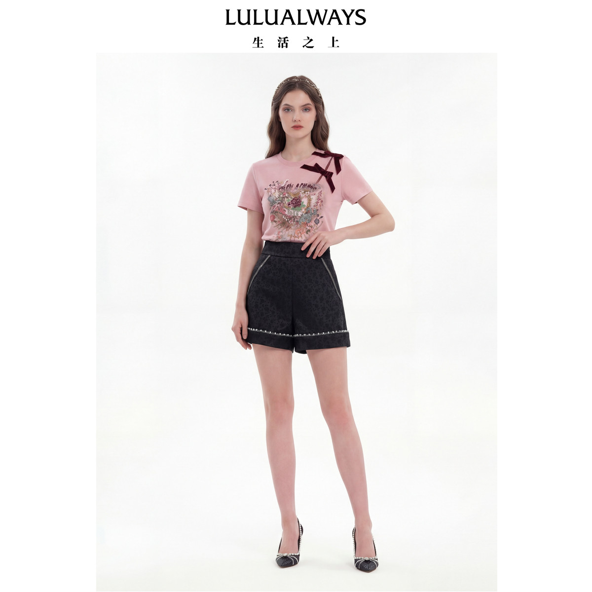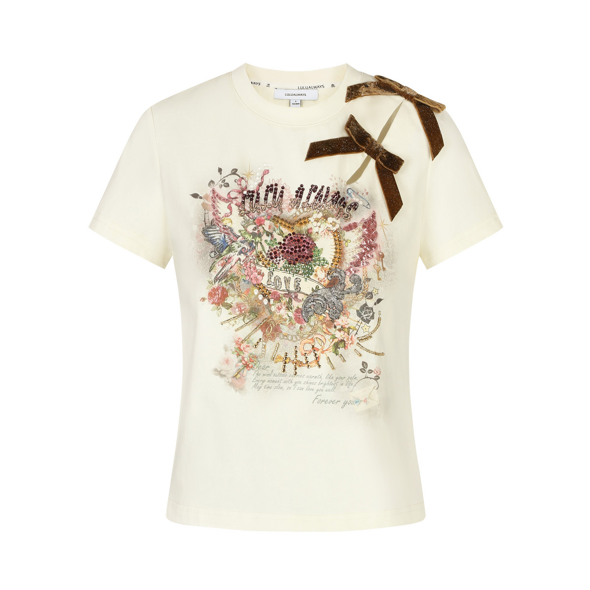 LULUALWAYS【商场同款】26春季新款宽松舒适钻饰蝴蝶结镂空T恤