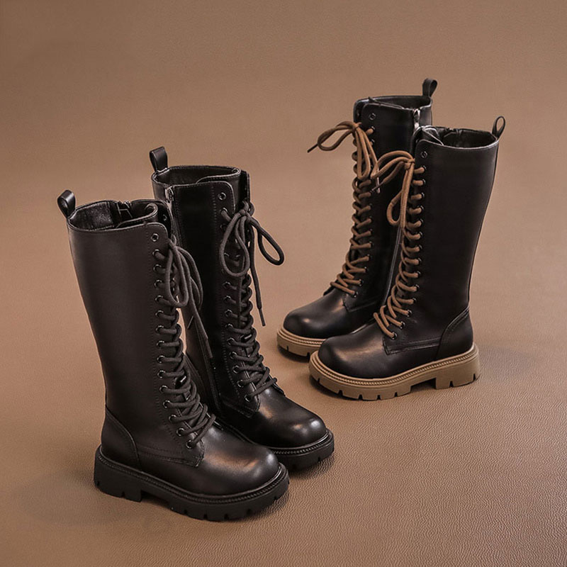 高筒靴女童加绒长靴英伦软底皮靴