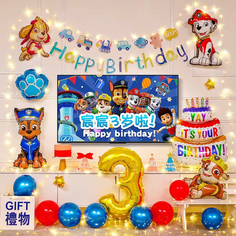 汪汪队生日气球男女孩宝宝儿童周岁快乐派对装饰场景布置用品背景