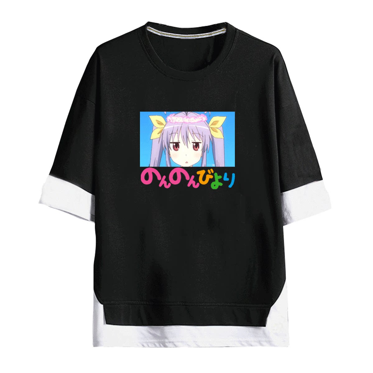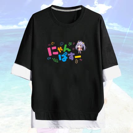 港风男动漫悠哉日常大王悠悠哉哉少女日和喵帕斯男半袖T恤假两件