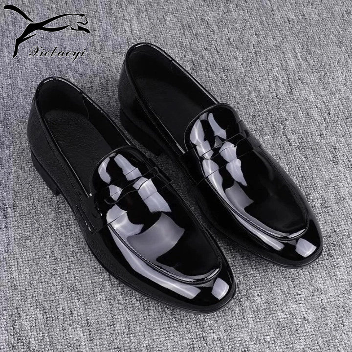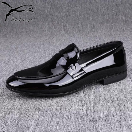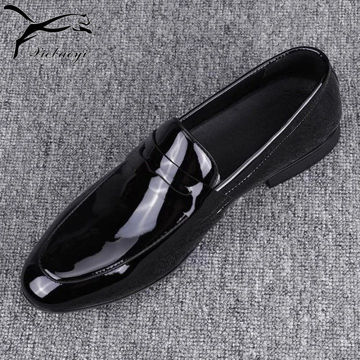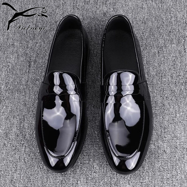 鞋豹乂纯皮男鞋2024潮流瘦版男士亮皮休闲皮鞋韩版百搭透气商务鞋