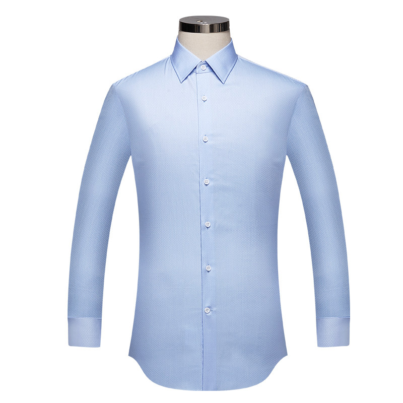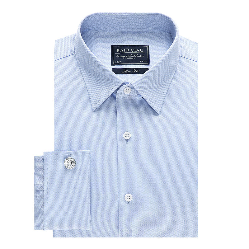 法式衬衫男长袖商务免烫蓝色纯棉立领新郎正装男士西装袖扣衬衣男