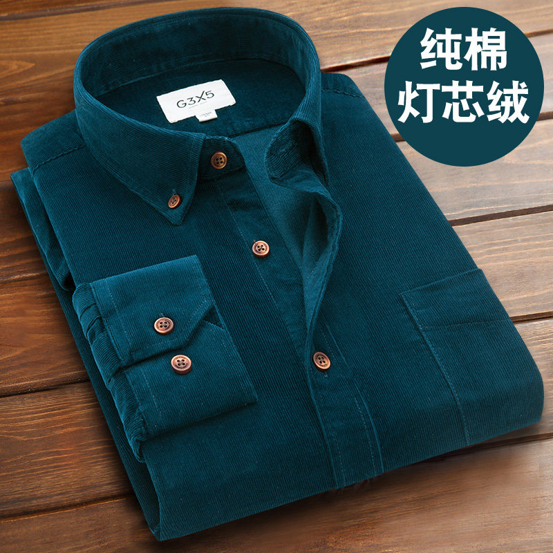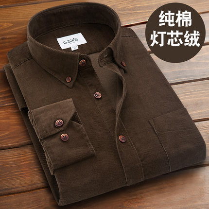 长袖灯芯绒磨毛休闲修身全棉衬衣