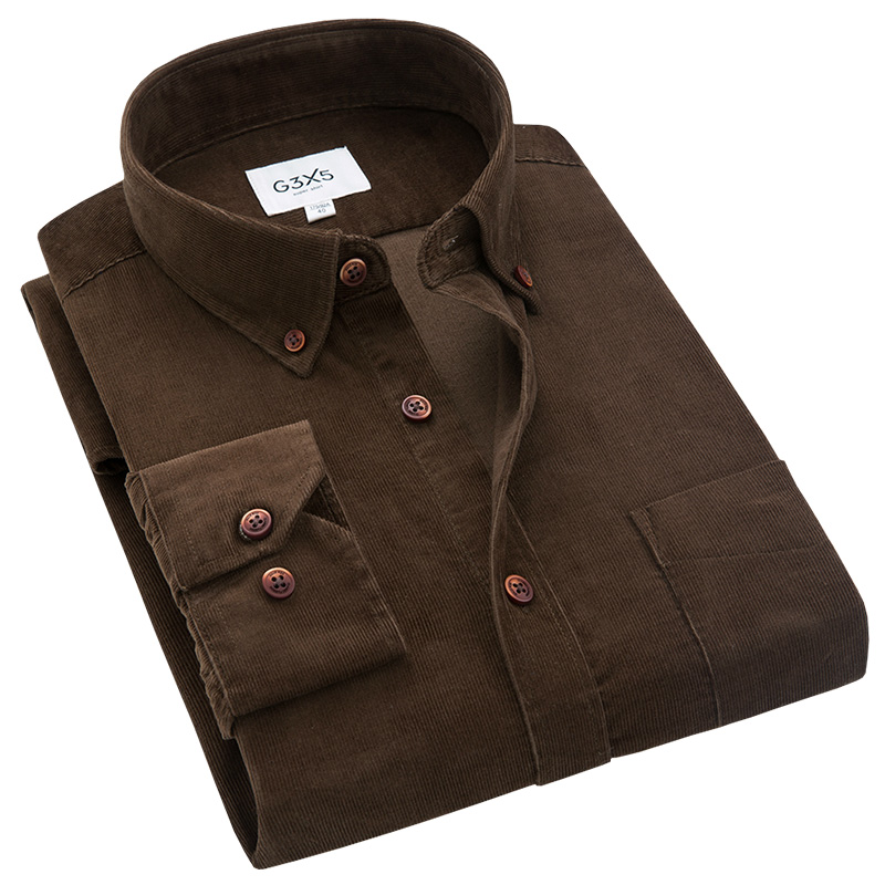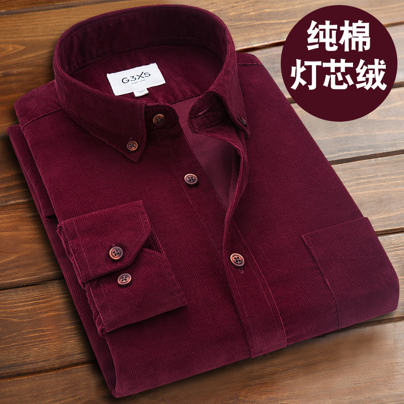G3X5春秋装新款衬衫男长袖纯棉灯芯绒磨毛休闲修身条绒全棉衬衣