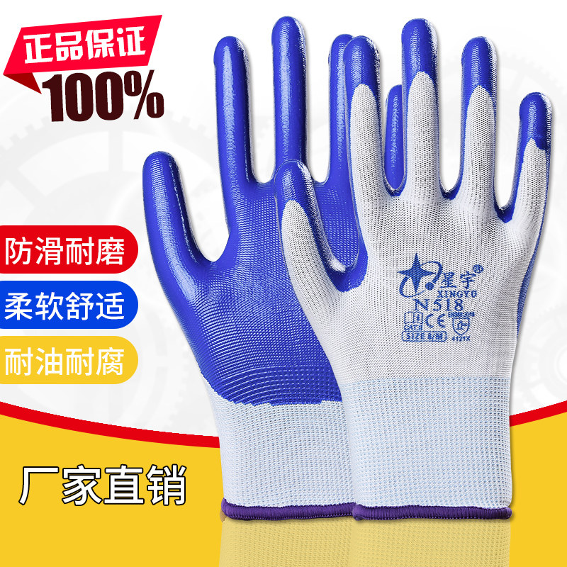 星宇手套n518劳保耐磨加厚工作干活丁腈塑胶浸胶防油防水带胶正品