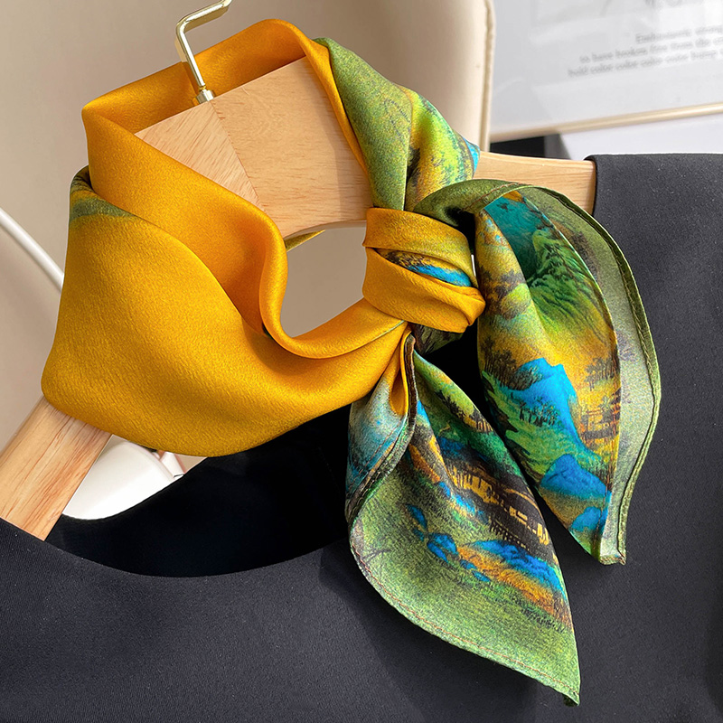 千里江山图丝巾女真丝小方巾围巾送长辈妈妈款杭州丝绸特产苏州