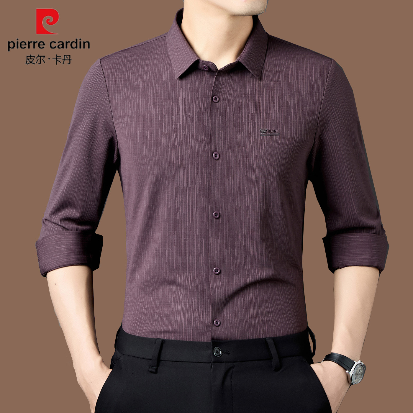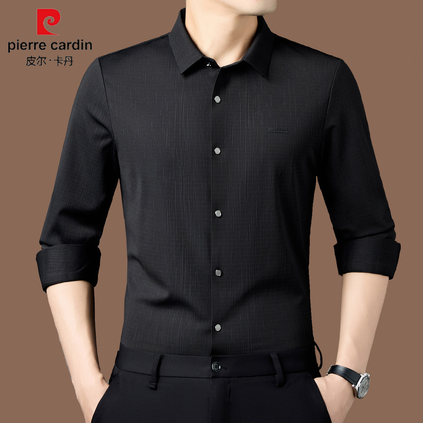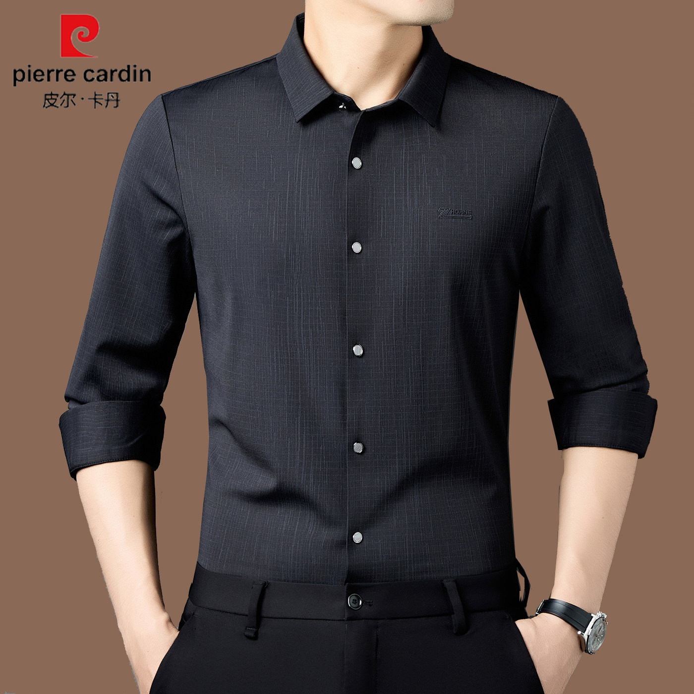 皮尔卡丹高端长袖衬衫男士2025秋冬保暖新款商务休闲免烫抗皱衬衣