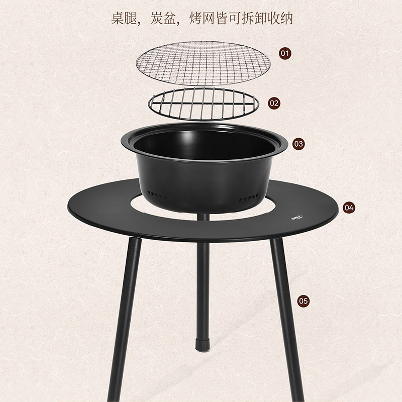 原始人围炉家用煮茶烧烤炉室内3套装烤火炉桌子户外收纳烤炉套餐