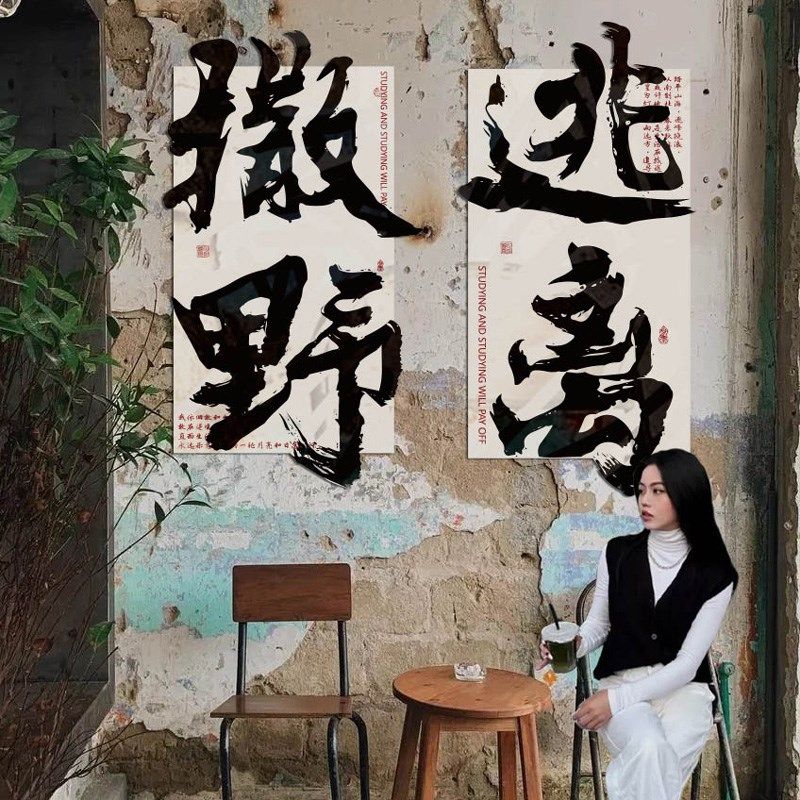 工业风奶茶咖啡店馆厅装饰摆件网红拍照区布置打卡墙壁面贴纸挂画