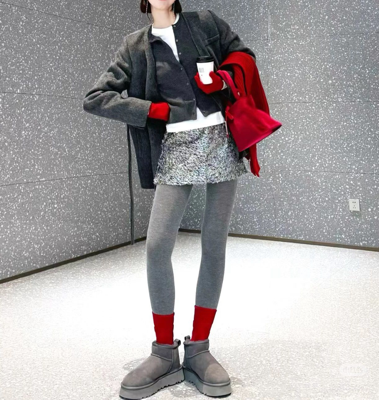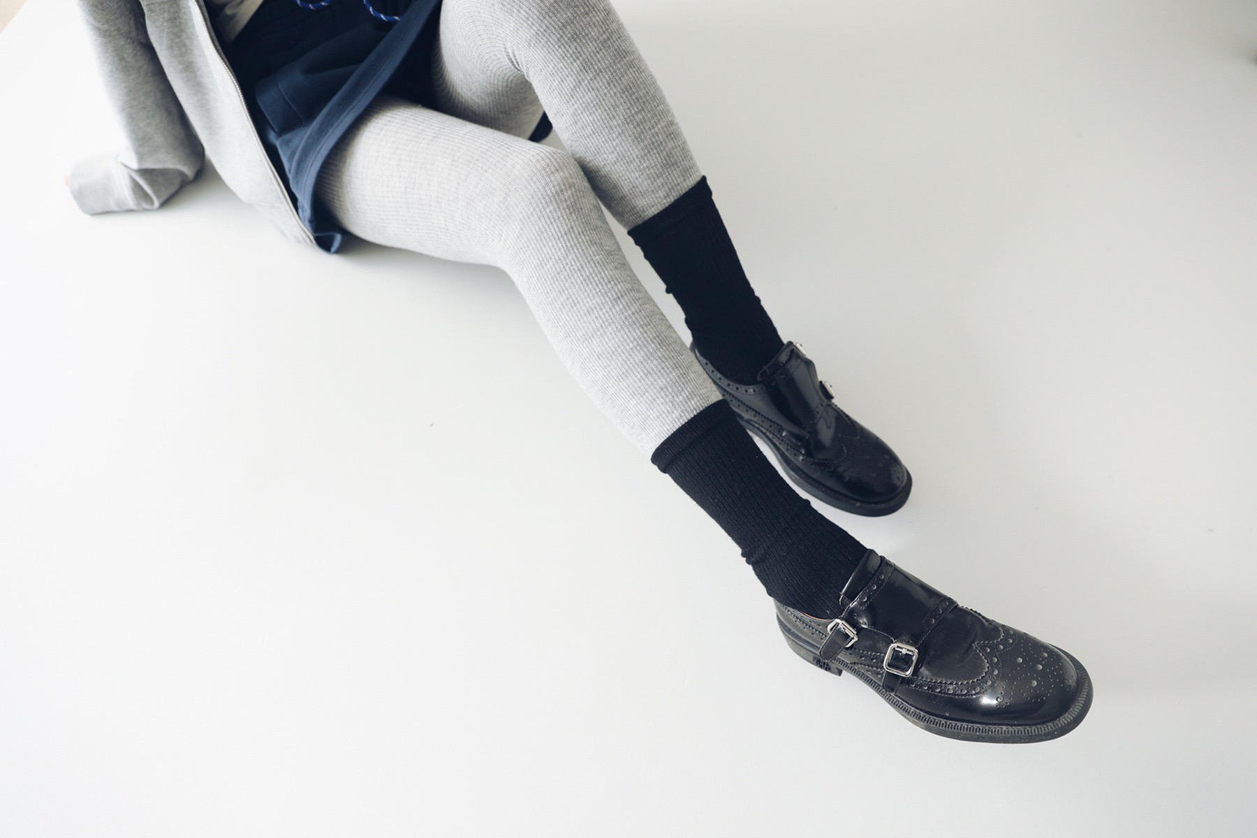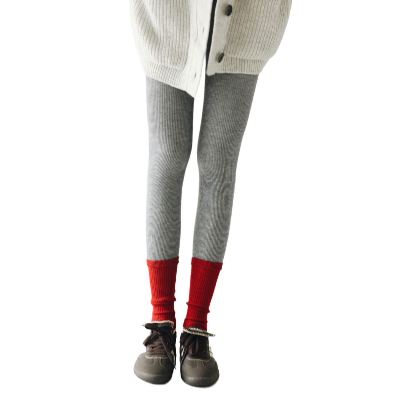 小众设计师叠穿风假两件拼接连裤袜羊毛混纺时髦拼色打底裤踩脚袜