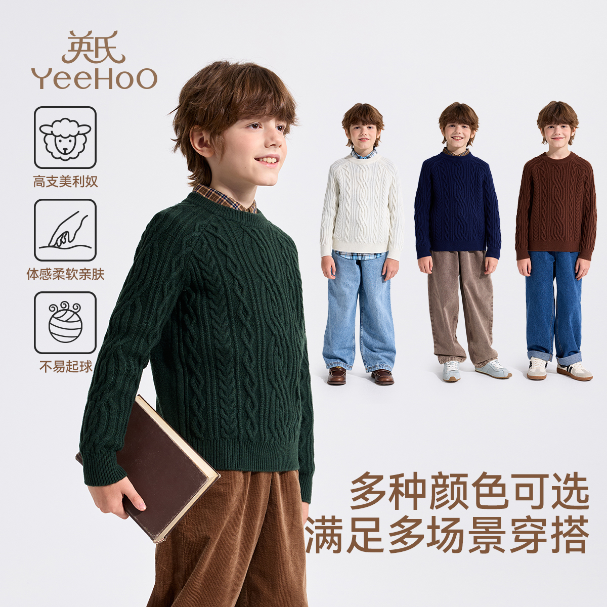 英氏童装男童羊毛衫打底2025秋冬新款儿童加厚保暖复古绞花针织衫