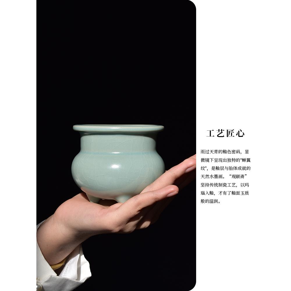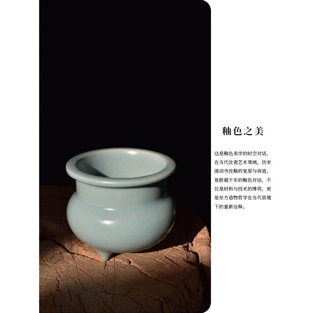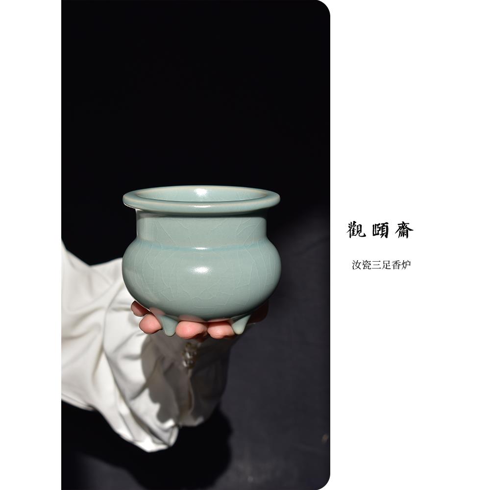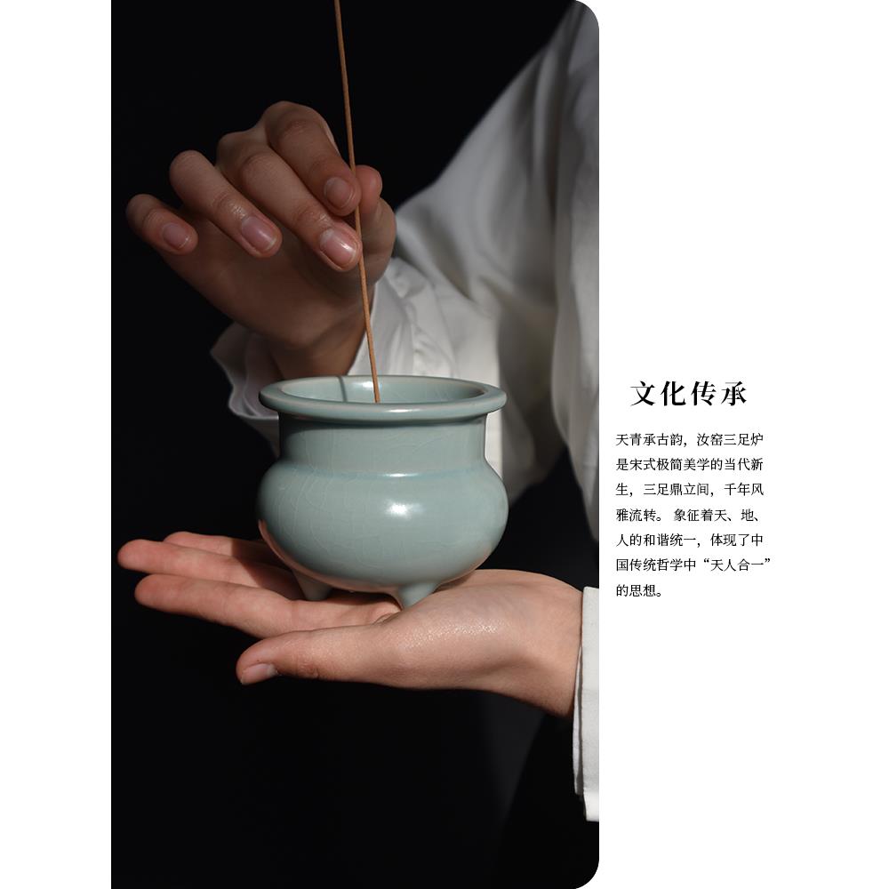 手工汝瓷彷古三足茶香炉家用室内供佛熏香香插篆香覆古陶瓷摆件