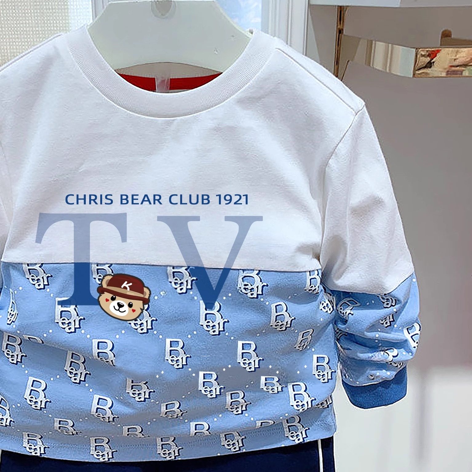 chris童装25春秋新款男童休闲拼接印花打底衫中大童百搭长袖T恤潮