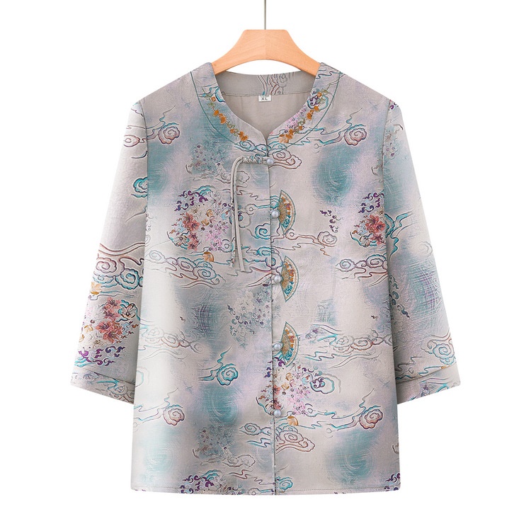 日式良品奶奶夏装衬衫中老年女装妈妈短袖上衣60岁70老太太夏季宽