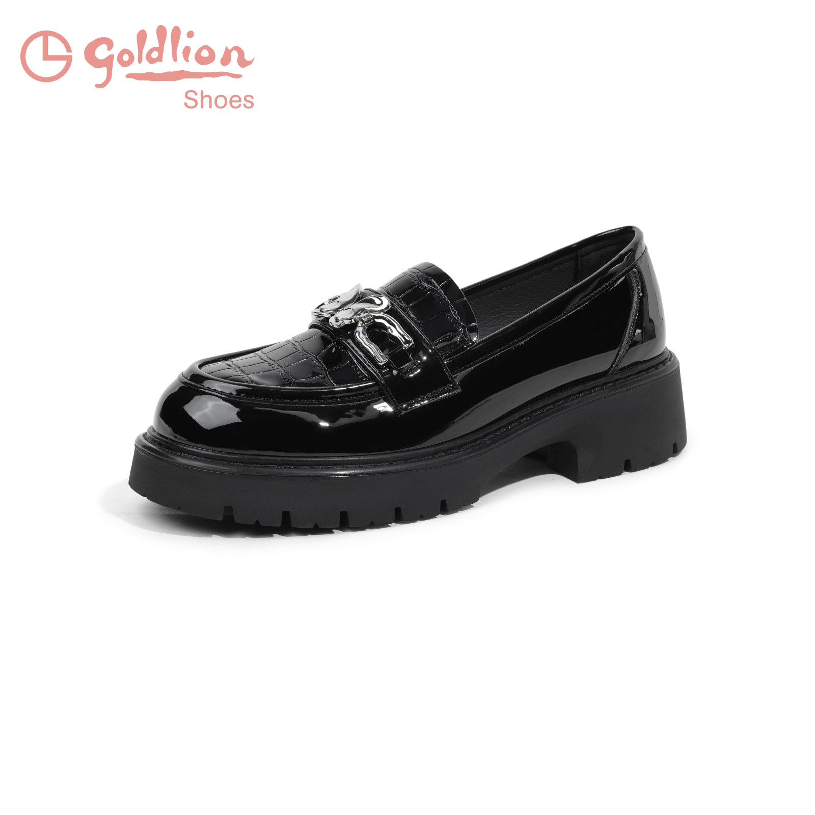 金利来厚底复古乐福鞋女春秋女鞋时尚鳄鱼纹百搭英伦风休闲单鞋女