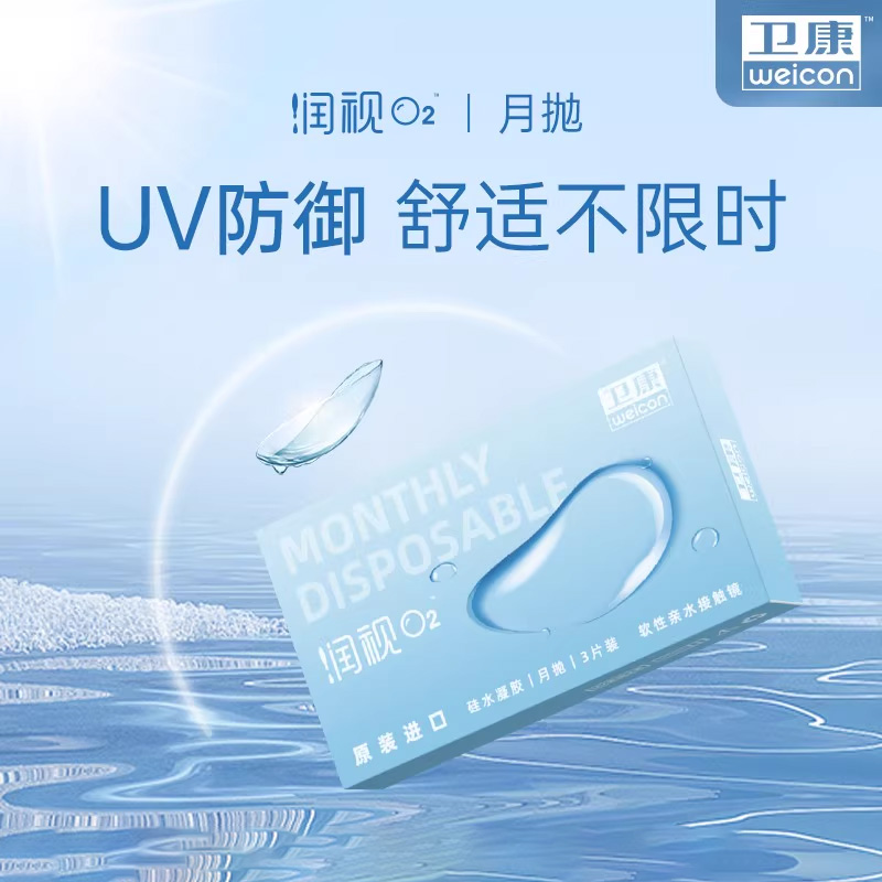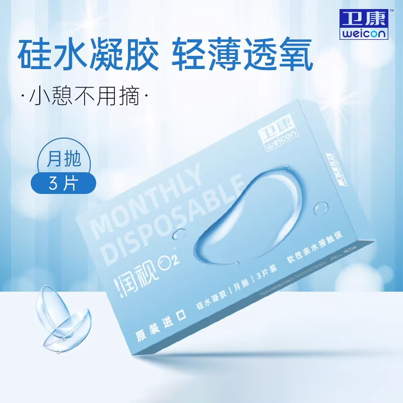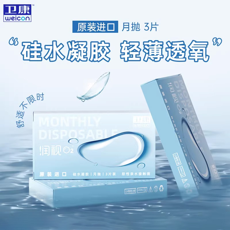 卫康润视O2硅水凝胶月抛6片近视隐形眼镜高透氧水润舒适透明片