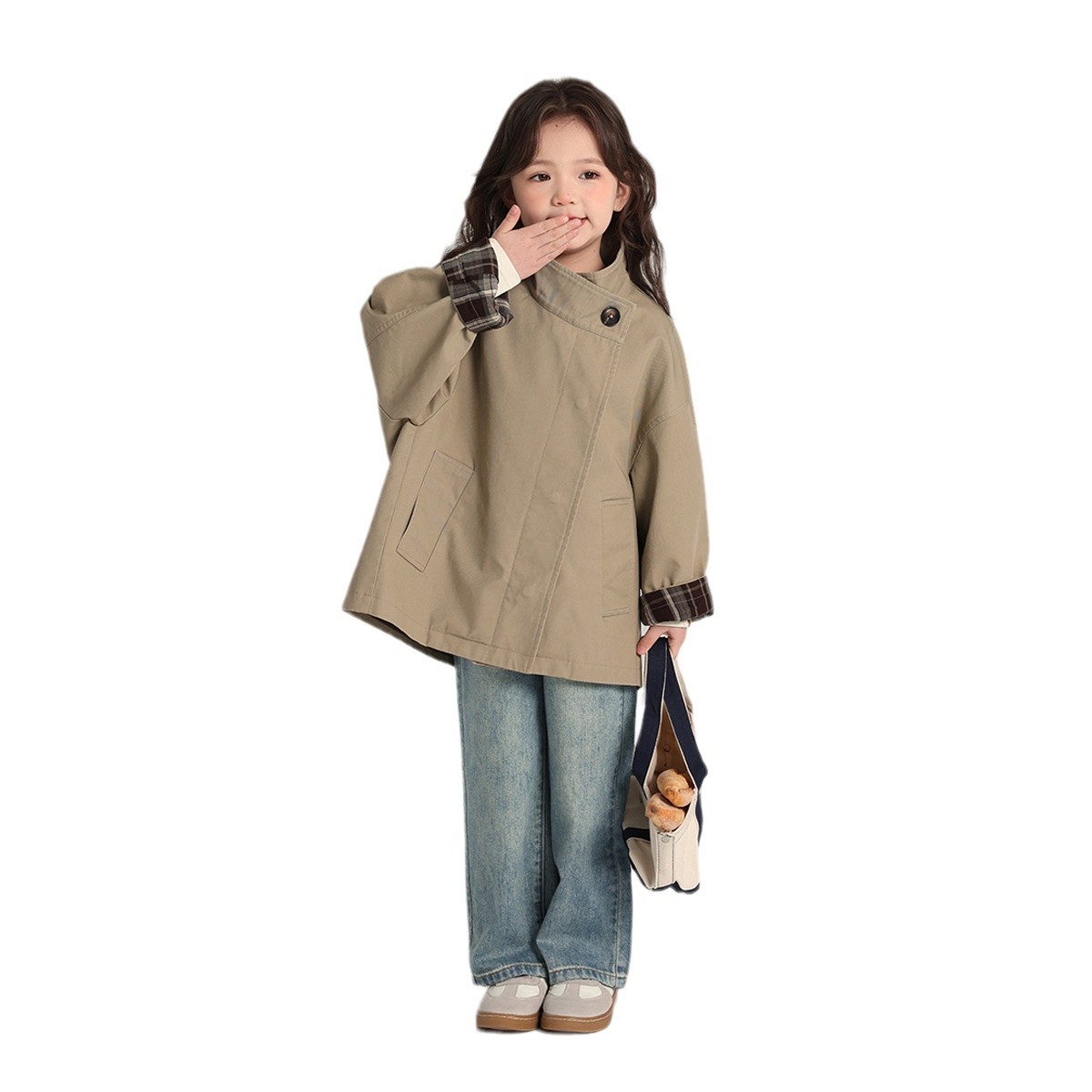 沫沫家女童外套2025春秋新款女宝宝风衣外套韩版复古风中长款