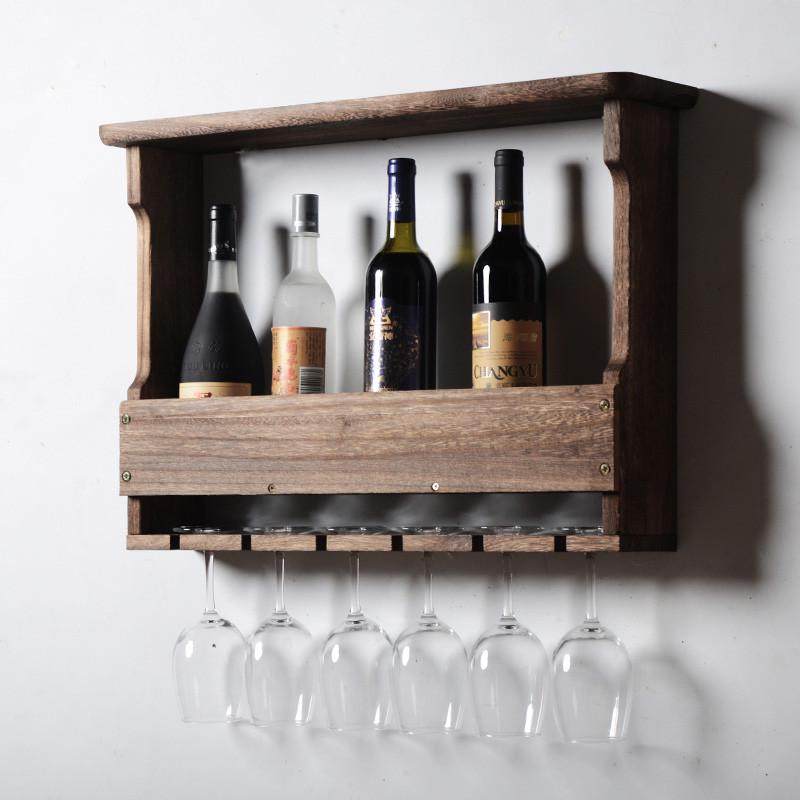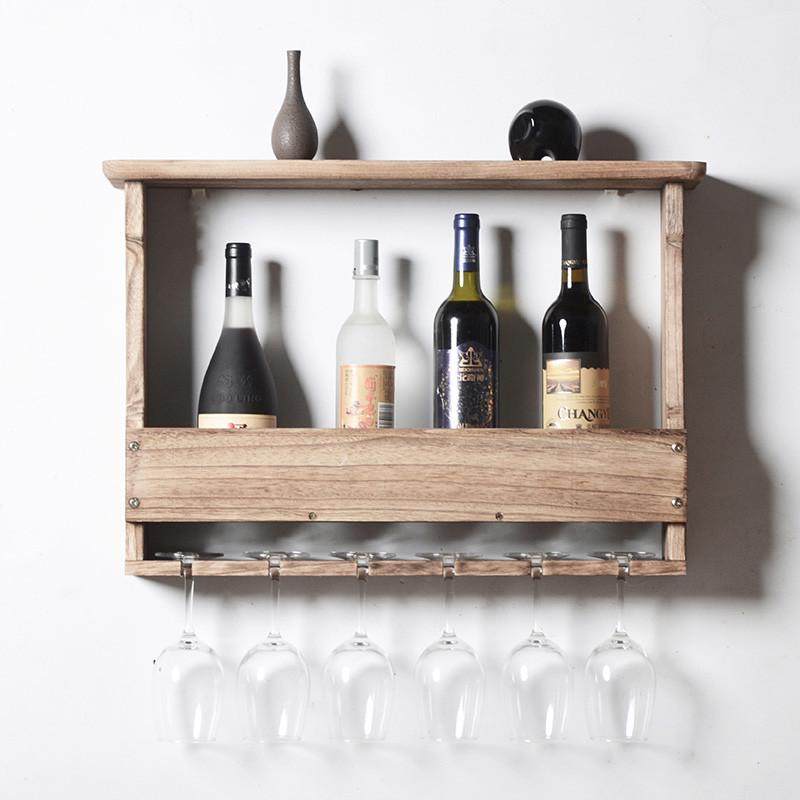 实木酒柜酒架红酒高脚杯架挂墙置物架装饰架现代简约壁挂墙上浅色