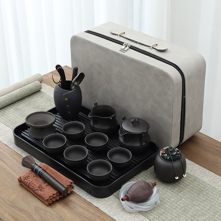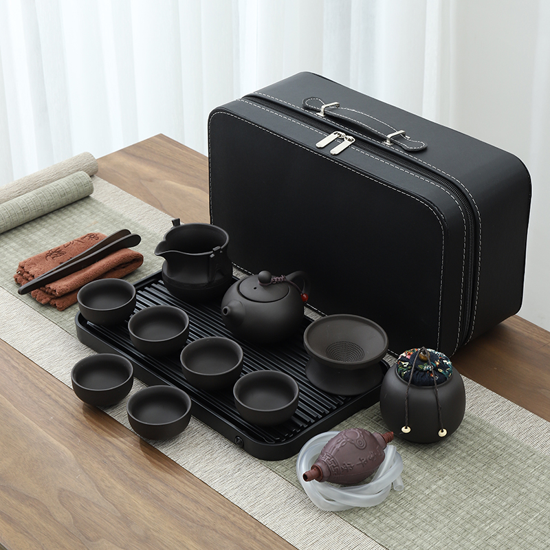 紫砂旅行陶瓷功夫茶具套装便携式包家用泡茶壶杯简约办公户外茶盘