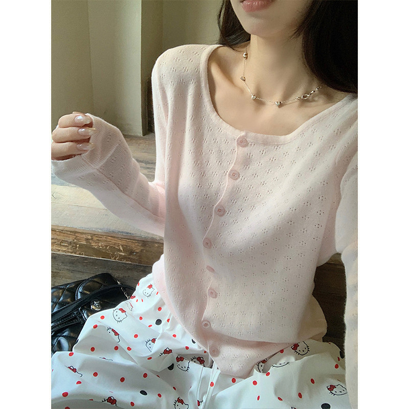 MosesQueen魔西女王棉质缕空短款针织开衫女春季薄款长袖外套上衣
