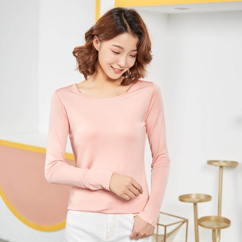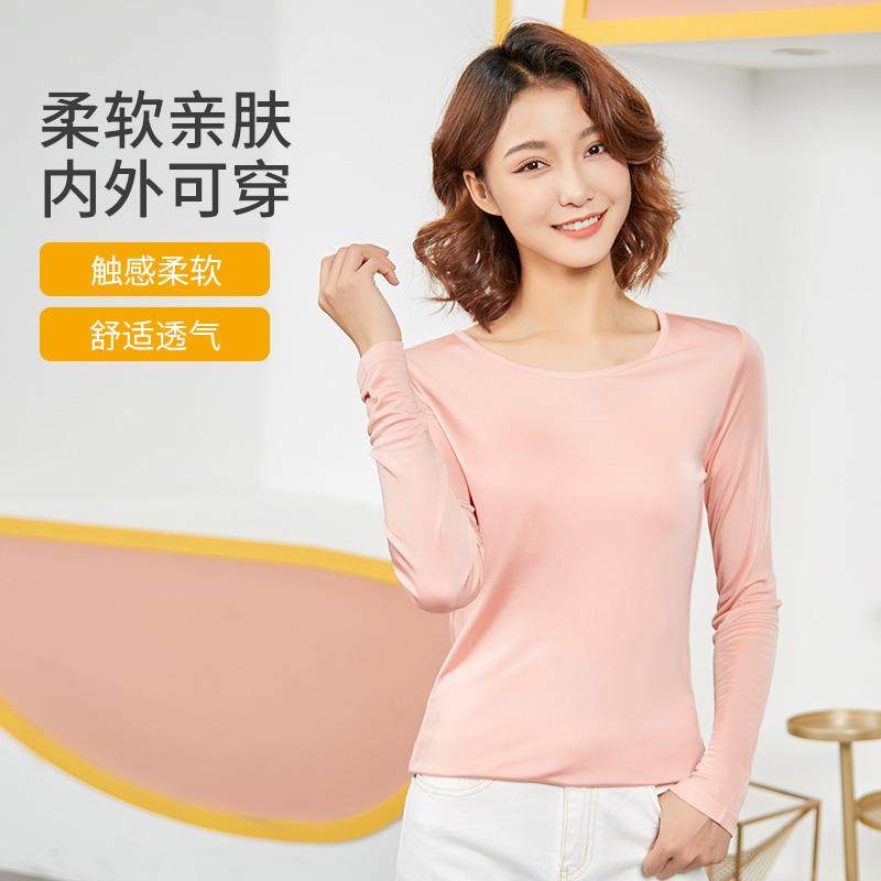 桑蚕丝真丝双面针织经典圆领修身长袖打底衫T恤上衣女秋冬加厚