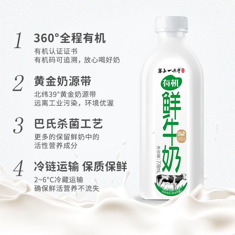 【周期购】塞上一头牛 有机鲜牛奶450ml/778ml 每周送一次 订购奶
