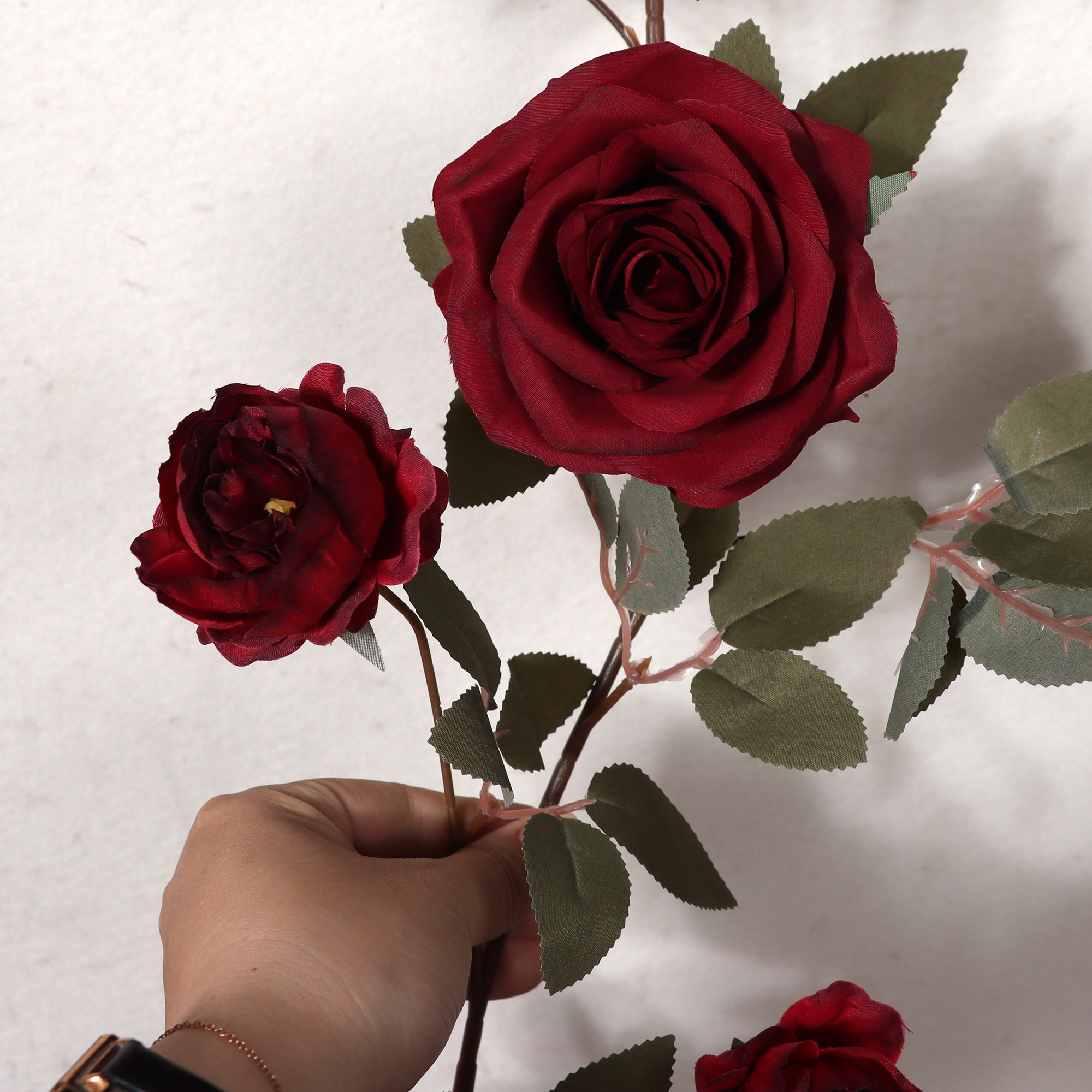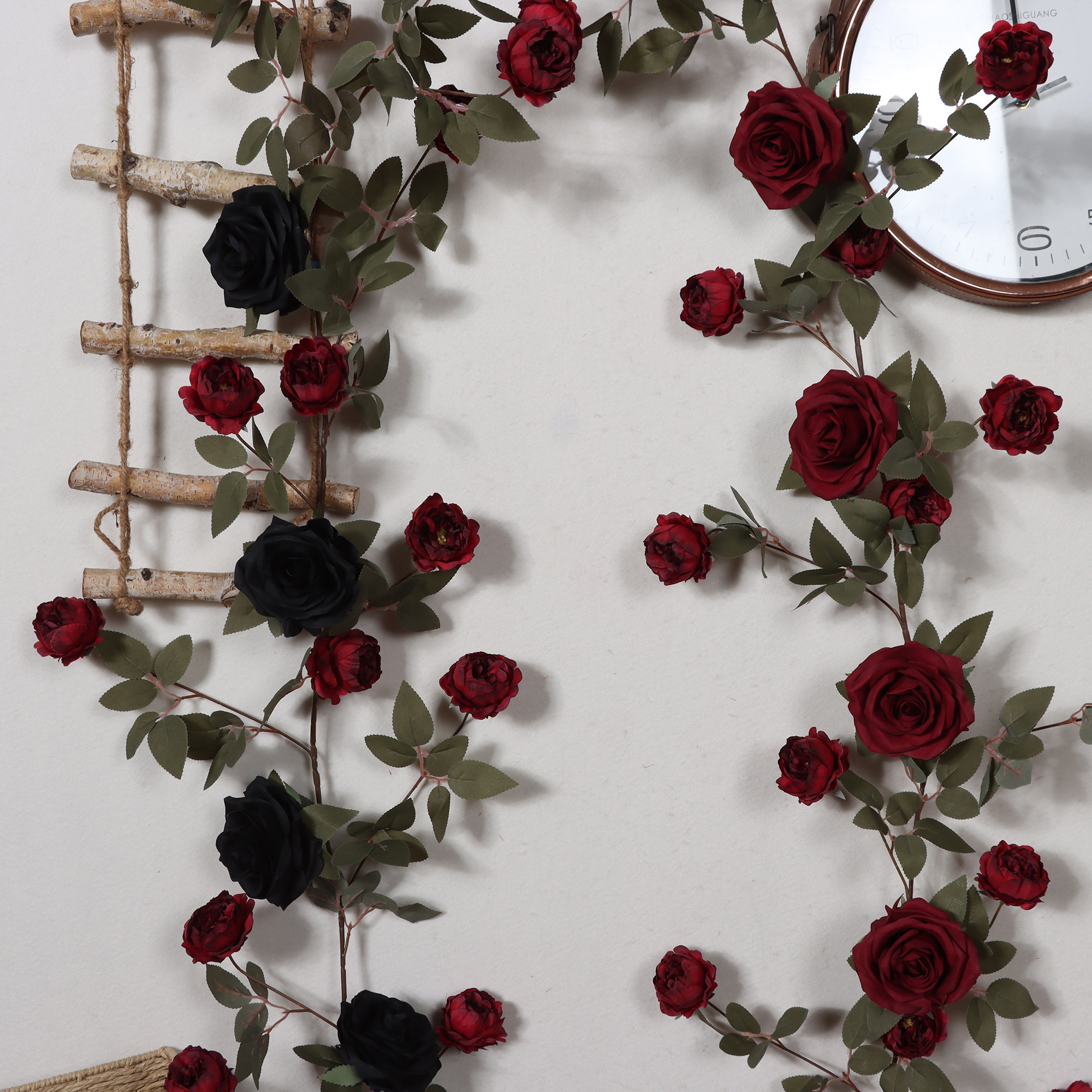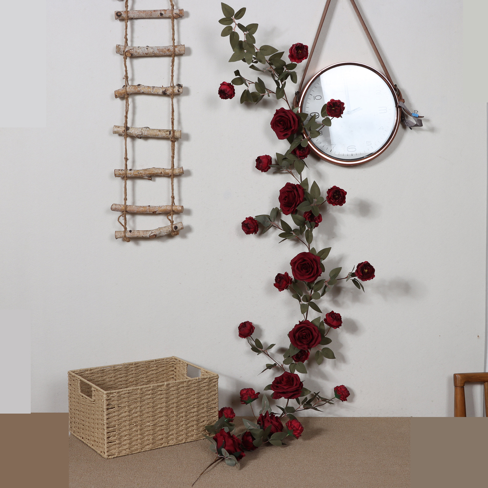 酒红色玫瑰花墙装饰花藤民宿景区造景仿真花藤条网红餐厅拍照藤蔓
