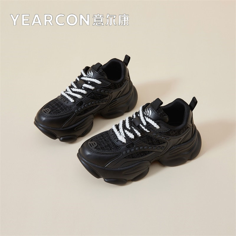 意尔康秋冬季女鞋厚底增高老爹鞋
