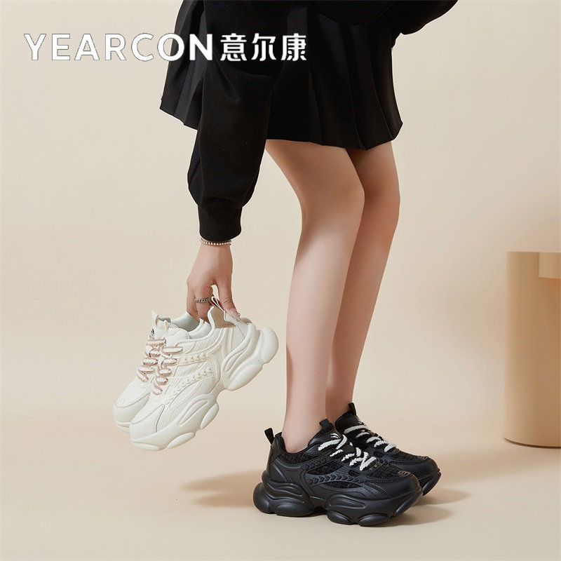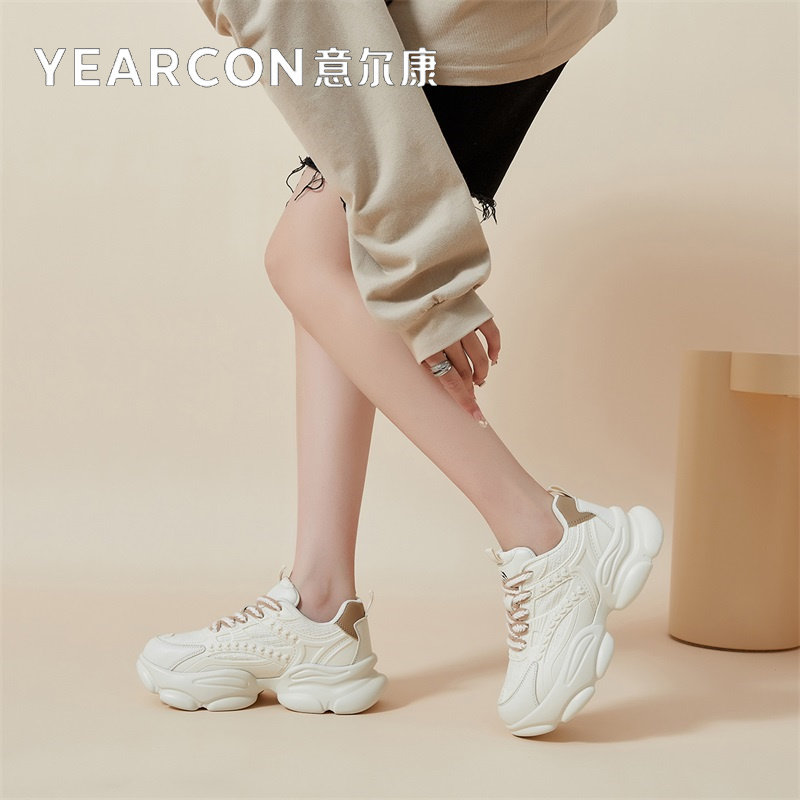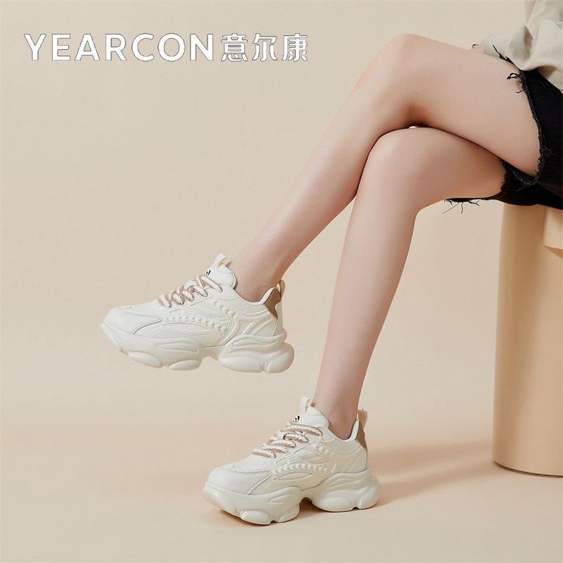 意尔康女鞋2026新款春秋季厚底增高老爹鞋小白鞋子女士运动休闲鞋