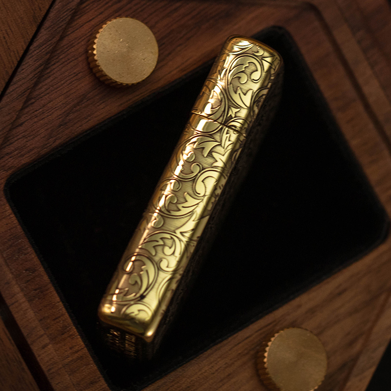 zippo打火机正版黄铜纤巧唐草防风煤油之宝正品窄机个性轻便薄款