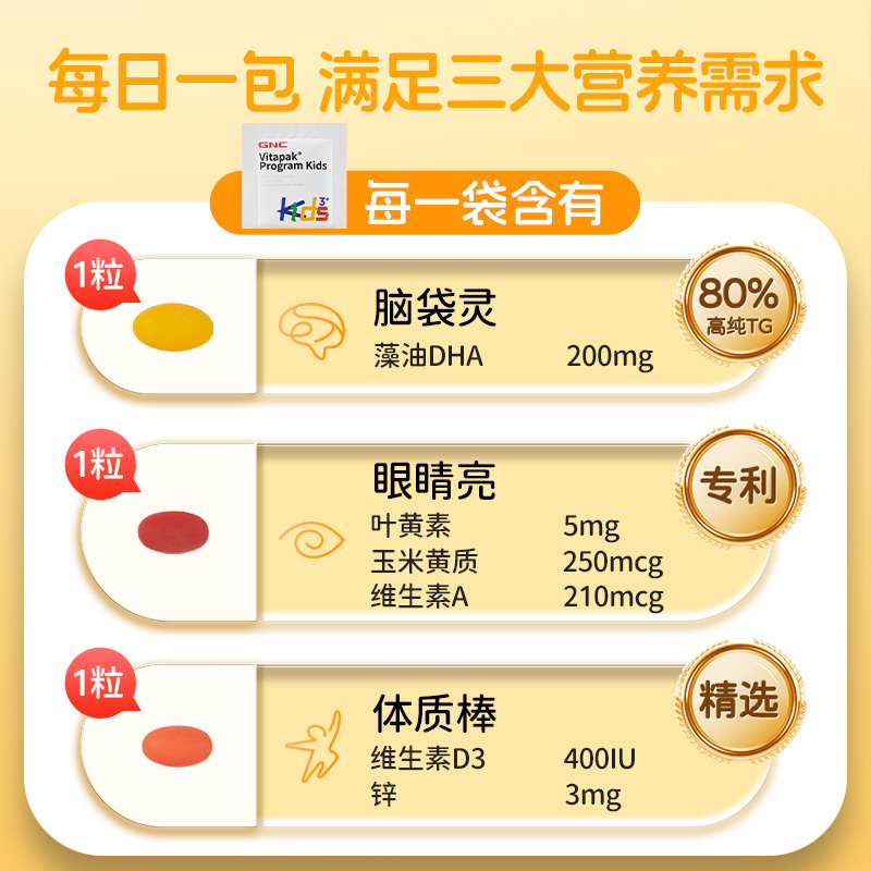 GNC健安喜儿童每日营养包叶黄素维生素d3藻油dha