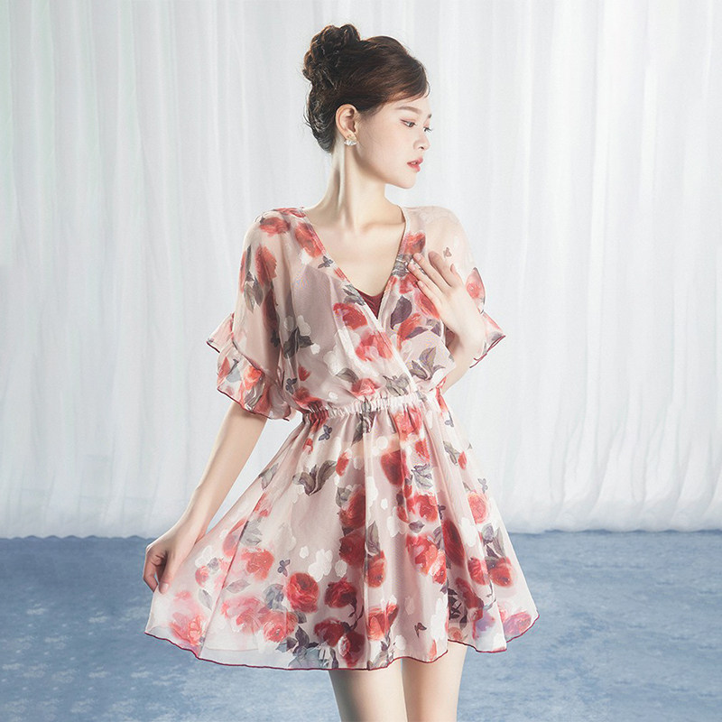 【徐苏苏 夕栀】纯欲风显瘦微胖女孩遮肚肉保守温泉三件套泳衣女