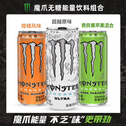 可口可乐 魔爪无糖饮料超越混合 果味能量风味饮料柑橘奇异果苹果
