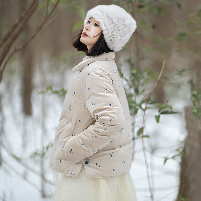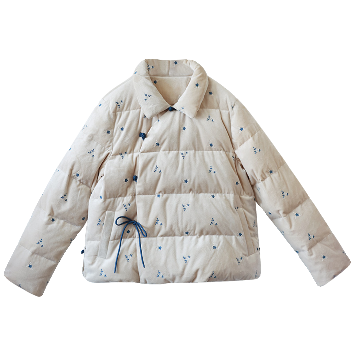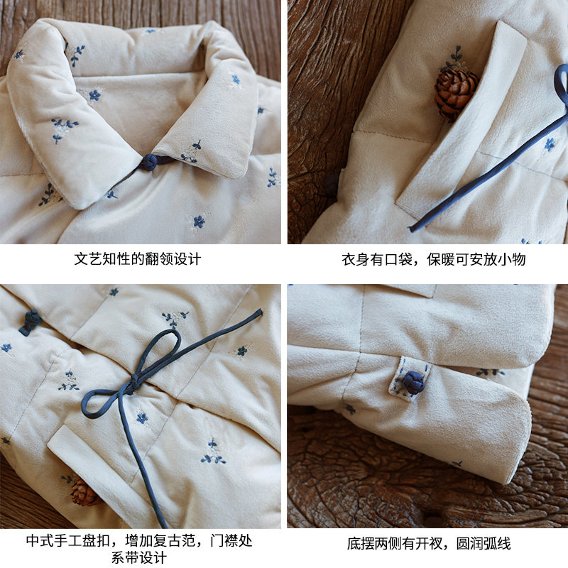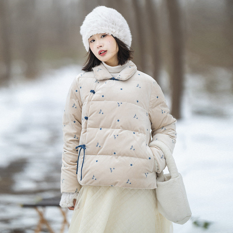 6折【杏花微雨】偏中式羽绒服女冬季翻领白鸭绒复古刺绣短款外套