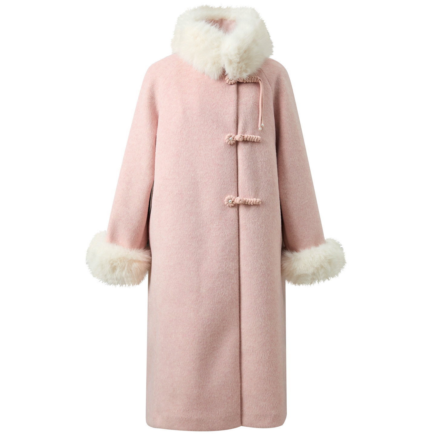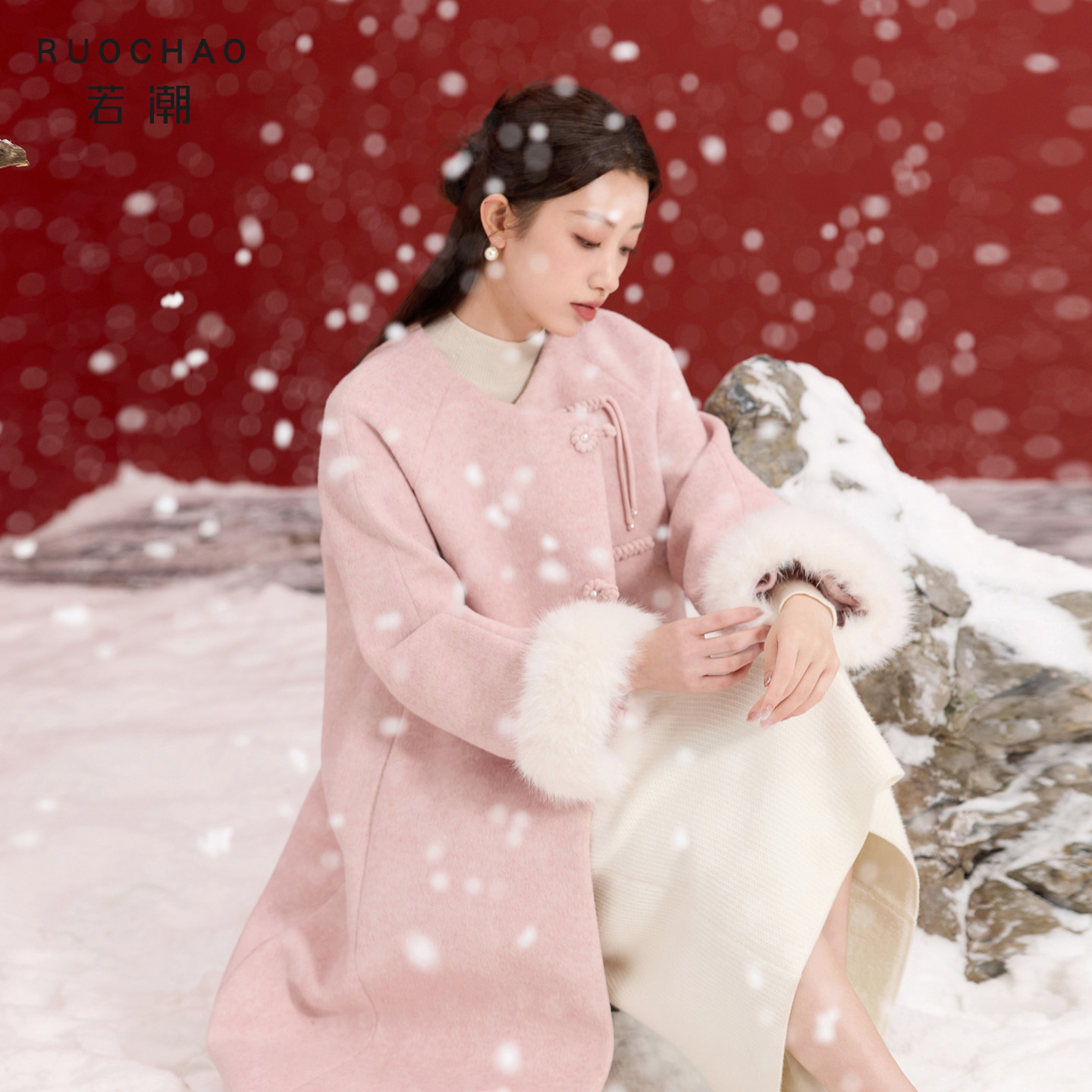若潮大码女装2025冬季新款国风90鸭羽绒服长款羊毛呢毛绒胖MM