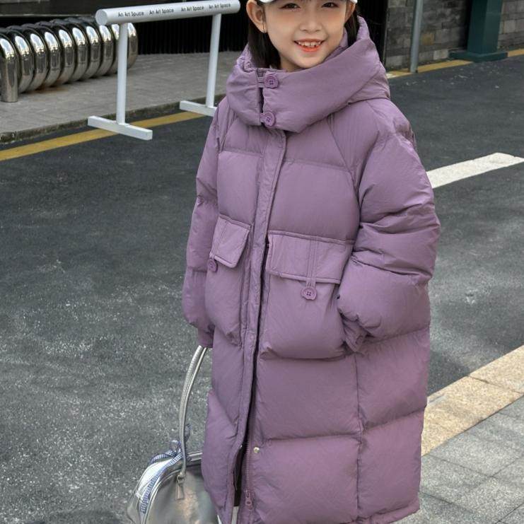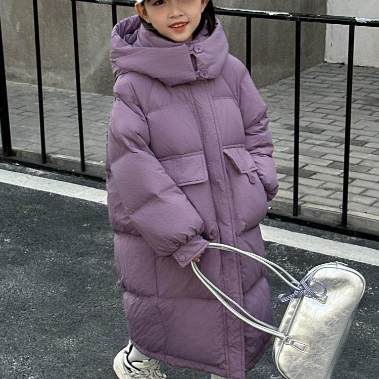 2025冬季男女童加厚白鸭绒羽绒服中长款韩版中大童儿童外套潮童装