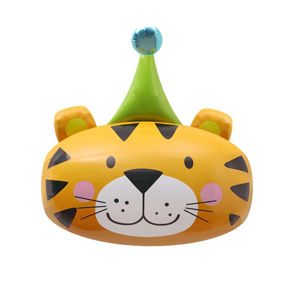 生日帽老虎头气球卡通丛林动物铝膜气球生日主题派对布置装饰