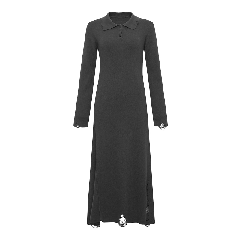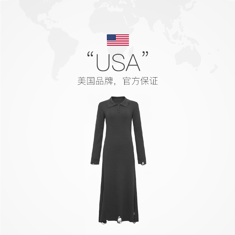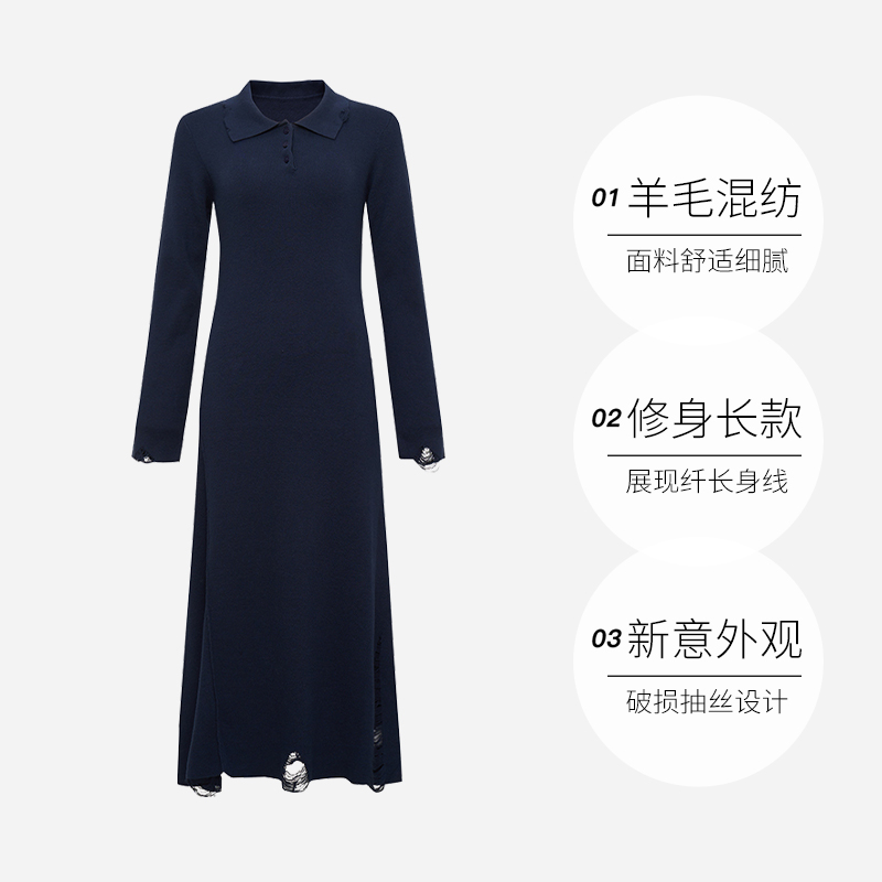 【自营】Petit Bari垂坠显瘦polo领羊毛针织连衣裙女 开叉长裙