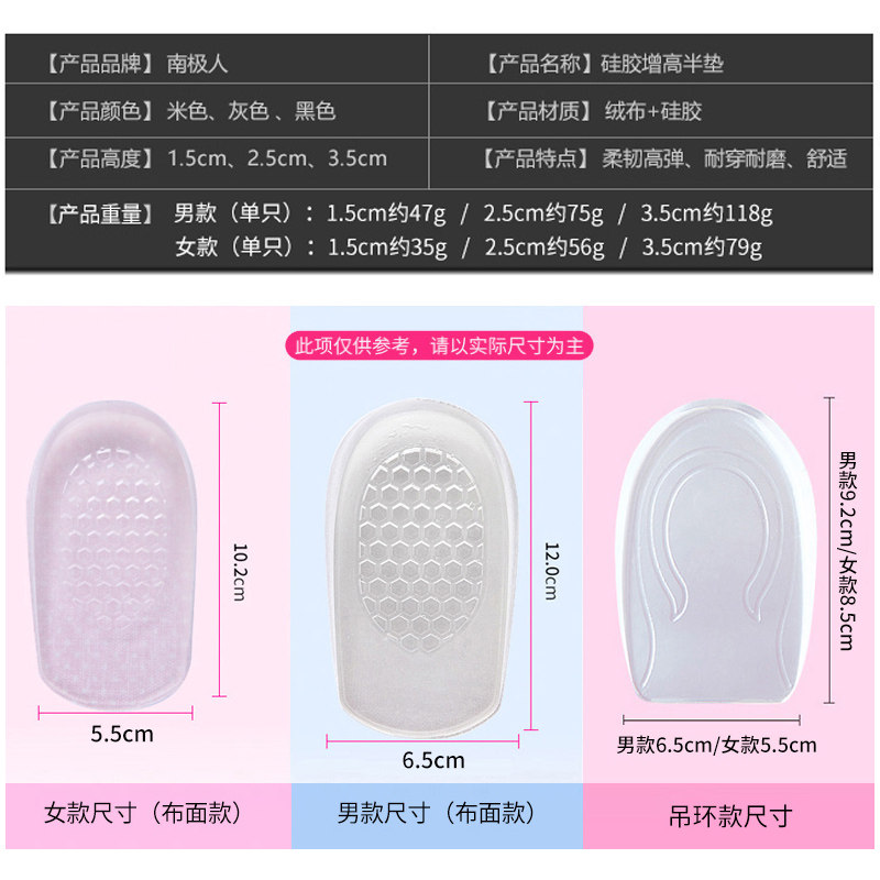 南极人硅胶仿生内增高鞋垫男女款隐形内增高神器小个子增高垫半垫