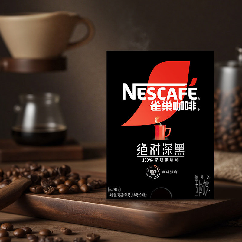 雀巢美式速溶纯黑咖啡粉绝对深黑30条盒装无糖0脂减燃官方正品