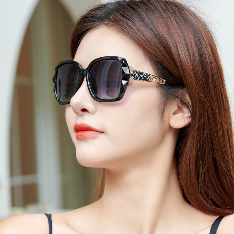 2024新款女士偏光太阳镜韩版明星潮眼镜圆脸大框防紫外线镶钻墨镜