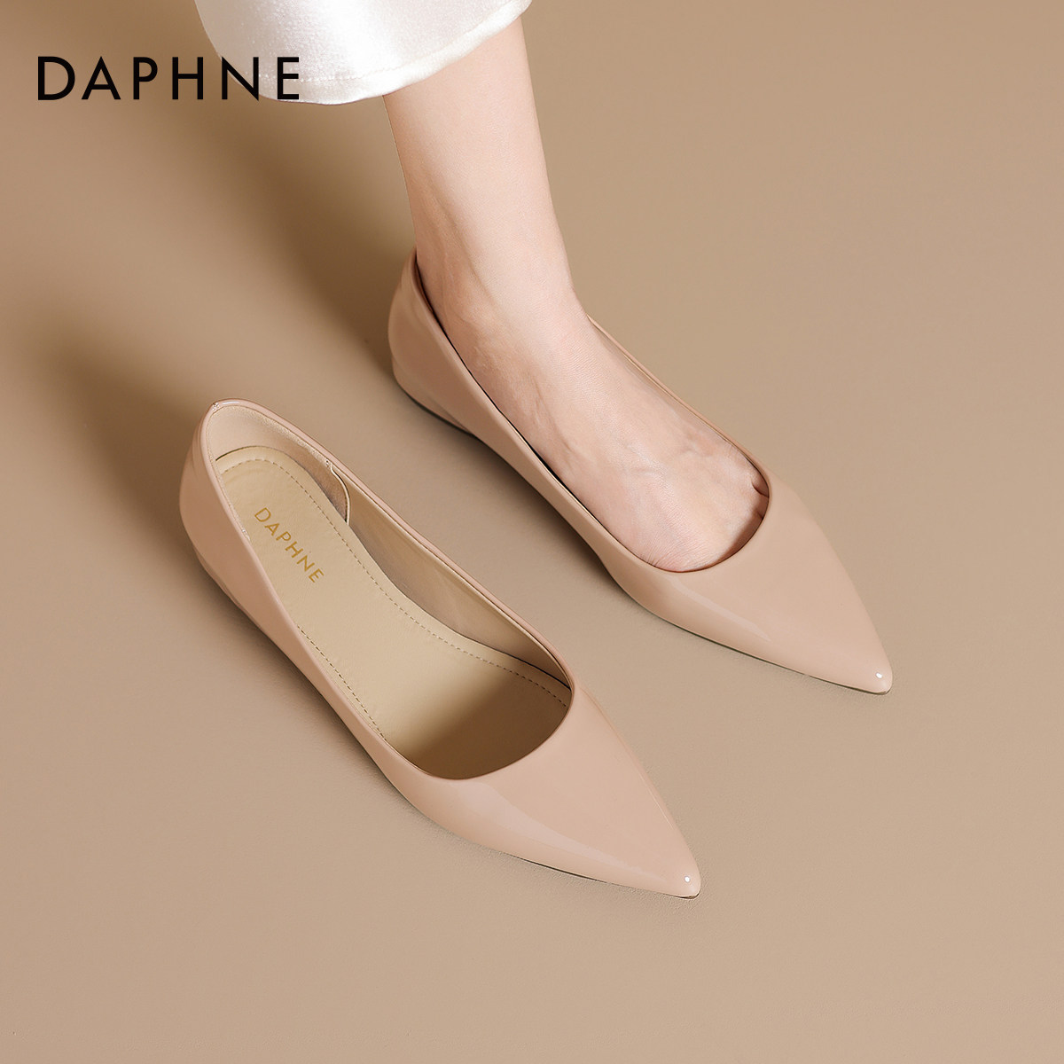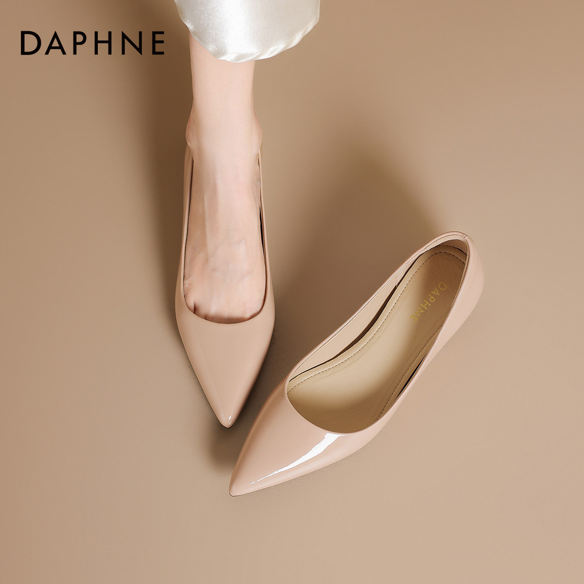 达芙妮平底单鞋女2025新款软底女士皮鞋裸色女鞋不累脚尖头高跟鞋